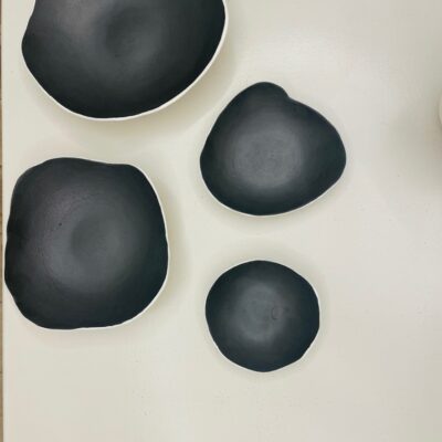 Σετ πιάτων 4 τεμάχια από λευκή πορσελάνη, σε διαφορετικά μεγέθη, χειροποίητα, από τη συλλογή “Οικειότητα σε Μετάβαση του Άρη Γκαλστιάν. Χρηστικά για φαγητό, πλένονται σε πλυντήριο πιάτων. Πωλούνται ξεχωριστά κατά παραγγελία. Καλέστε μας για περισσότερα!