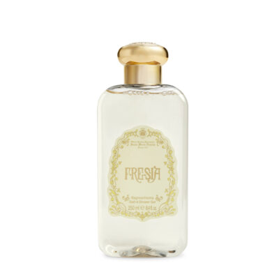 Fresia: the enveloping freshness aroma of Officina Profumo-Farmaceutica di Santa Maria Novella. Our bath gel is created to gently cleanse the skin with a special glance to sustainability thanks to the surfactants of vegetable origin chosen for its formulation.