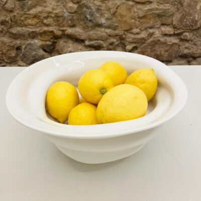 Handmade Ceramic Pot made of white porcelain from the collection “Intimacy in Transition” by Aris Galstyan, Dimensions: 26cm x 26cm x 13cm. Usable for food and washable in the dishwasher.
