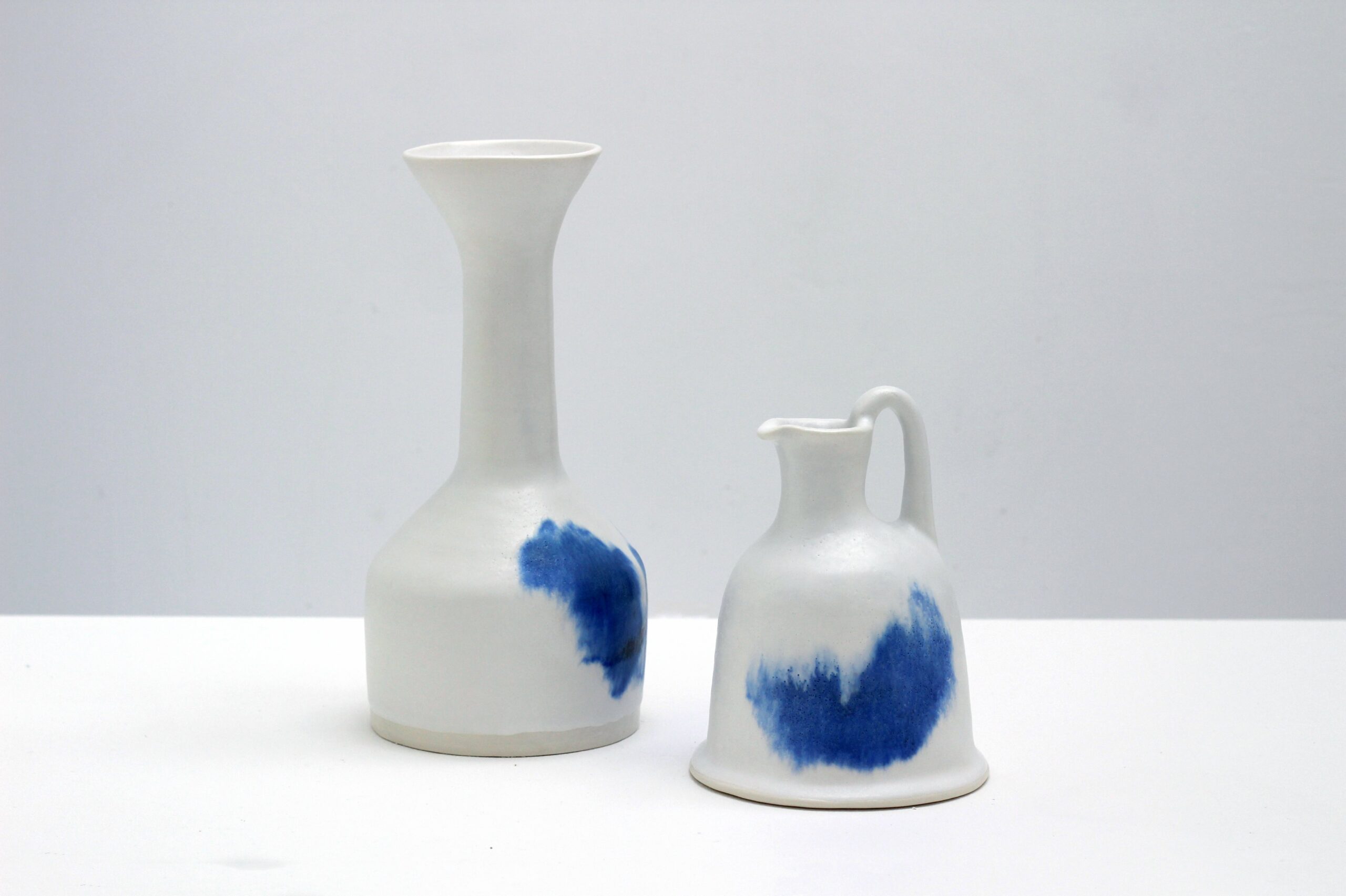 Melina Xenaki graduated from the Royal College of Art in 2014. Working from her studio in East London, the maker focuses on perfecting her practice, experimenting with different ceramic materials in search of original and striking effects. She aims to share her love for the raw and authentic beauty of the traditional villages of the Greek islands scattered in the Aegean Sea. Drawing inspiration from the beautiful architectural elements of the Cyclades, Melina turns the whitewashed facades, the endless blue of the sky and the sea into unique objects for the home. Passionate about texture and variation in her glazes, Melina mixes all her materials from scratch, looking to imitate the surface features of paper and the expressive, harmonious, and skillful qualities of calligraphy, meaning beautiful writing in greek.