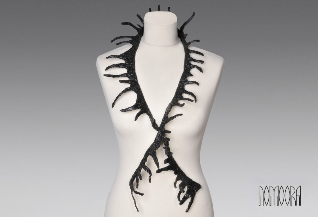 Κολιέ και βραχιόλια από σιλικόνη άλλοτε υπερμεγέθη και άλλοτε ελεύθερα σε φόρμες και χρώματα τα οποία αγκαλιάζουν το σώμα και γίνονται ένα με αυτόν που τα φέρει. Η συλλογή των κοσμημάτων του συνοδεύεται από μεγάλα γλυπτά έργα σιλικόνης που απλώνονται στον χώρο και προσφέρουν μια πρωτόγνωρη εμπειρία του απρόβλεπτου και πολυδιάστατου αυτού υλικού.
