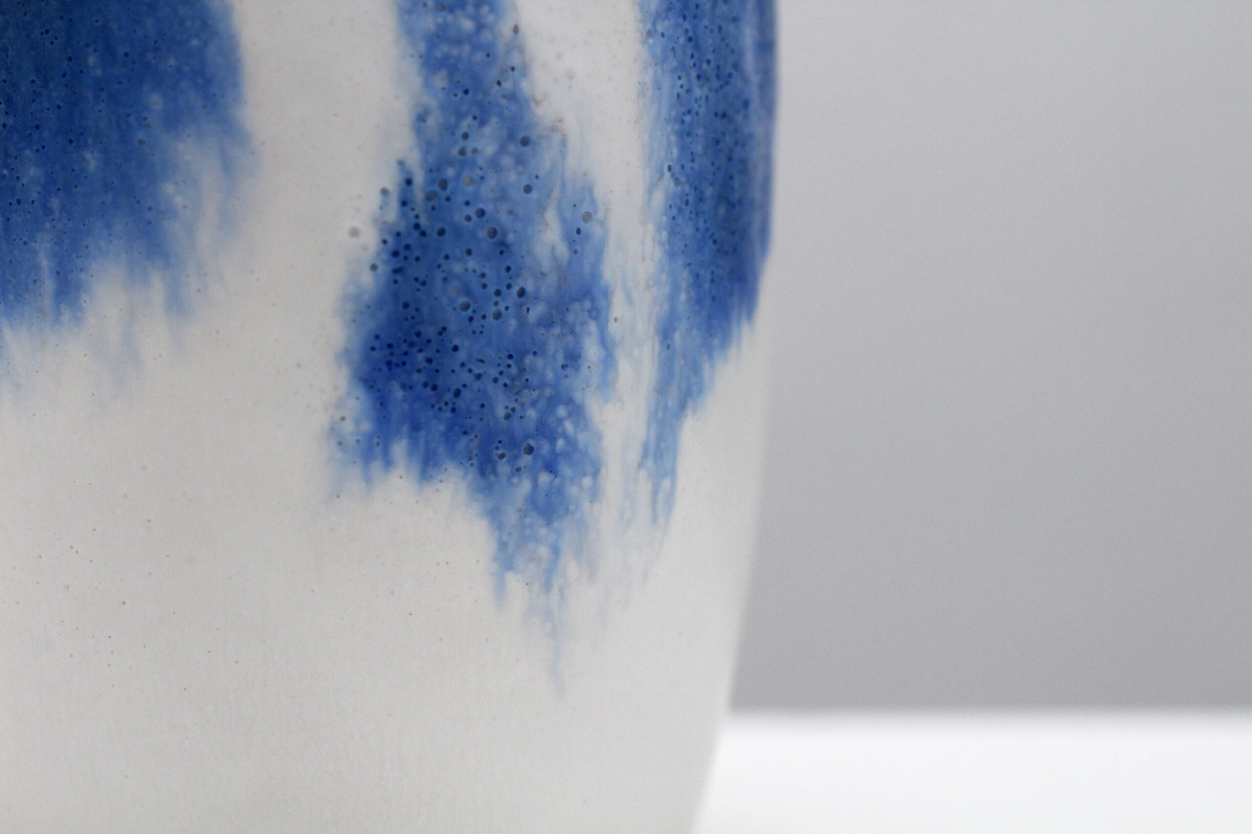 Melina Xenaki graduated from the Royal College of Art in 2014. Working from her studio in East London, the maker focuses on perfecting her practice, experimenting with different ceramic materials in search of original and striking effects. She aims to share her love for the raw and authentic beauty of the traditional villages of the Greek islands scattered in the Aegean Sea. Drawing inspiration from the beautiful architectural elements of the Cyclades, Melina turns the whitewashed facades, the endless blue of the sky and the sea into unique objects for the home. Passionate about texture and variation in her glazes, Melina mixes all her materials from scratch, looking to imitate the surface features of paper and the expressive, harmonious, and skillful qualities of calligraphy, meaning beautiful writing in greek.