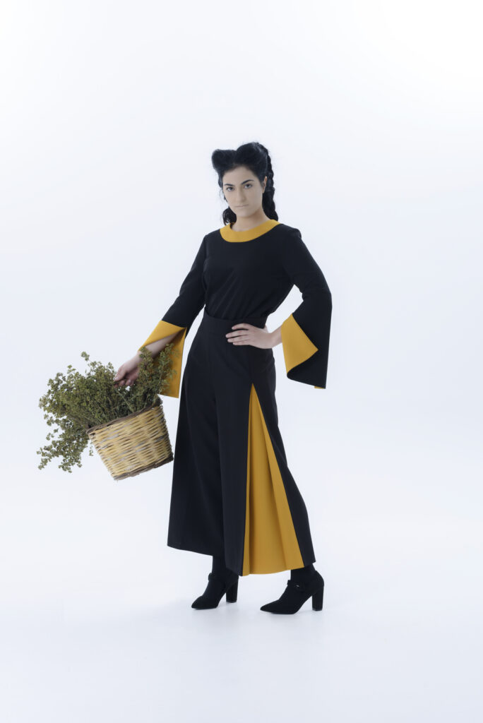 With a strong aesthetic view and high-quality materials, BOLD collection is immersed into the universe of Greek costumes and focuses on their geometry and dynamism. Through intense design, lines, and minimalistic motives she succeeds in adjusting clothes of the past into present reality. Deconstructing and then reconstructing the style of traditional dresses, Niki Psyhogiou suggests clothes that underline powerfulness, vigor, and the harmonic contradictions of individuals today.