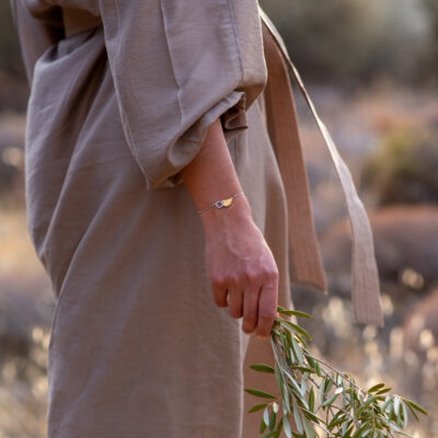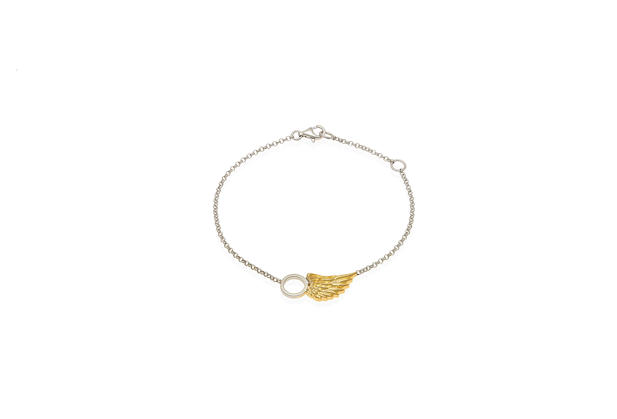 Ασημένιο βραχιόλι με λευκό πλατίνωμα & κίτρινο επιχρύσωμα και αλυσίδα από τη συλλογή ANATASIS. Designer: MYSTIS by Sofia Zarari