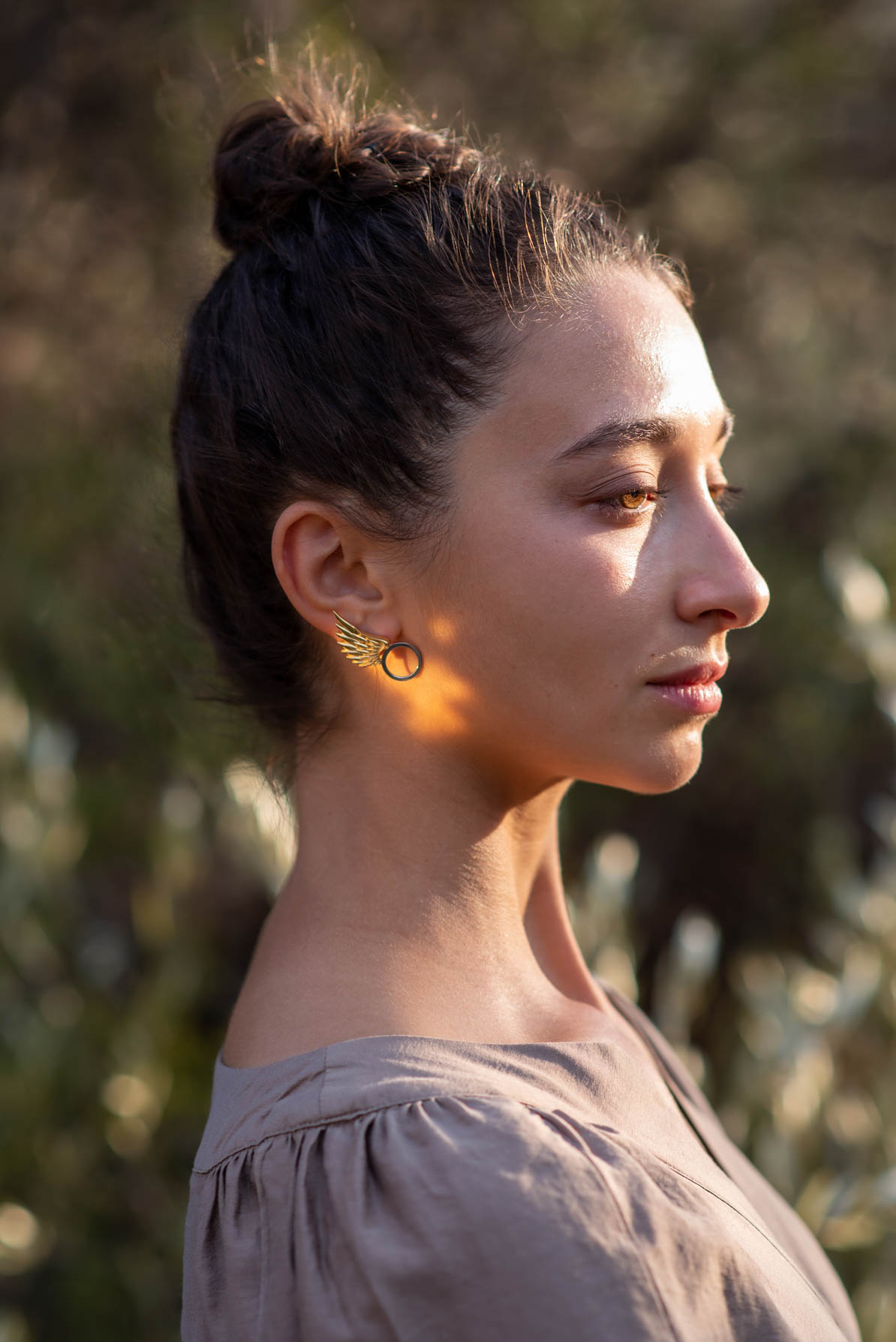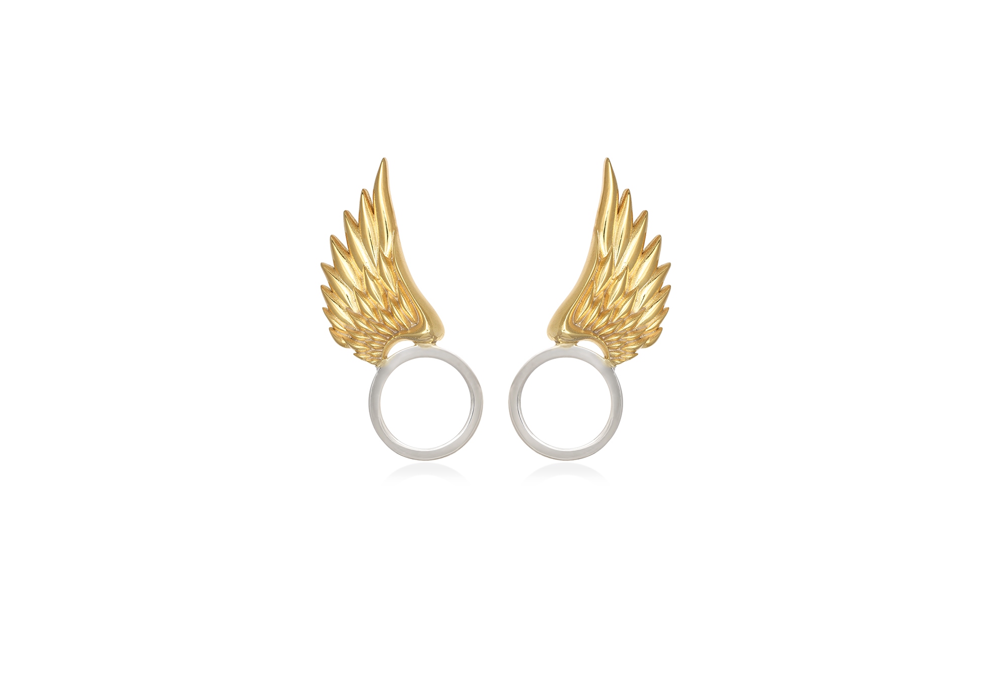 Ασημένια σκουλαρίκια με λευκό πλατίνωμα & κίτρινο επιχρύσωμα και αλυσίδα από τη συλλογή ANATASIS. Designer: MYSTIS by Sofia Zarari