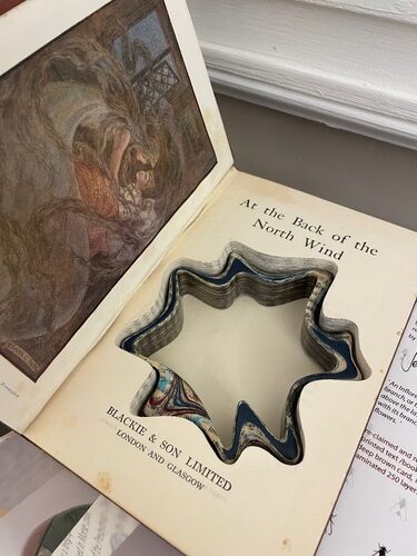 Μοναδικό βραχιόλι φτιαγμένο από τις σελίδες του βιβλίου “At the Back of the North Wind” by George Macdonald. Διαστάσεις: 12 x 11 cm. Κάθε κόσμημα συνοδεύεται από το βιβλίο από το οποίο δημιουργήθηκε.