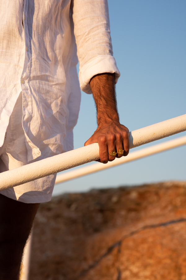 Η “Shales” είναι μια hybrid capsule συλλογή, εμπνευσμένη από το καλοκαίρι που πέρασε στις Κυκλάδες. Η μέλισσα φέρνει το βασικό συστατικό της γλυκύτητας, το μέλι, σε όλους τους θεούς και τους ανθρώπους. Γνωστή για τις σκληρές επιδόσεις της, η μέλισσα παράγει μέλι, το οποίο είναι προστατευτικό και θεραπευτικό μεταξύ των άλλων ενδυναμωτικών ιδιοτήτων της. Η μέλισσα (Mélissa) ήταν η τροφός του Δία και οι μέλισσες που προέρχονταν από το σώμα της θεάς Δήμητρας λατρεύονταν ως νύμφες, ιέρειες κ.λπ. Χειροποίητo με λεπτομέρεια, με σκοπό να μιμηθεί τα απολιθώματα που έχουν απομείνει αποτυπωμένα σε σχιστόλιθους, που σώζονται ακόμη στο χρόνο.