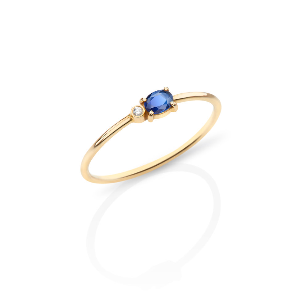 Χρυσό δαχτυλίδι 14κ με μπλέ ζαφείρι 0,23ct και λευκό διαμάντι 0,02ct. Μέγεθος : 55 1/2. Συνδυάστε το με άλλα λεπτά χρυσά δαχτυλίδια.