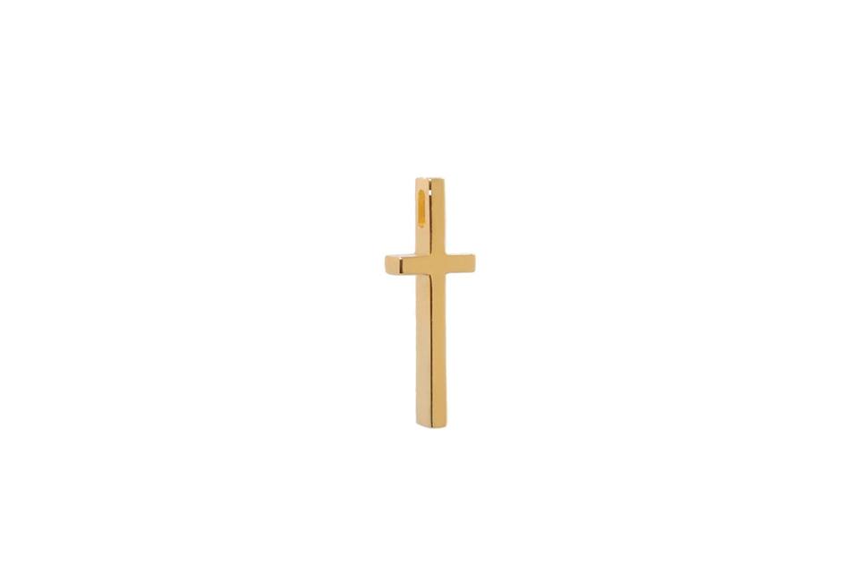 Σταυρός από κίτρινο χρυσό διαθέσιμο σε 14 καράτια ή 18 καράτια, σε ροζ ή λευκό χρυσό. Αλυσίδα κατόπιν παραγγελίας στα ίδια χρώματα.