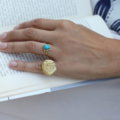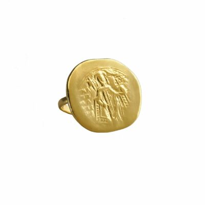 24k Επιχρυσωμένο ασημένιο δαχτυλίδι από το αυθεντικό βυζαντινό νόμισμα Κωνσταντινάτο.
