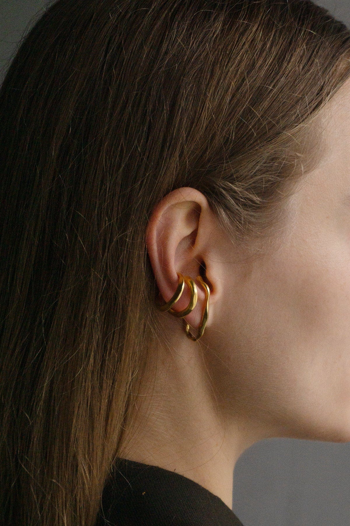 Μονό σκουλαρίκι earcuff από επιχρυσωμένο ασήμι 925 για μη τρυπημένα αυτιά. By AR.M Anna Rosa Moschouti.
