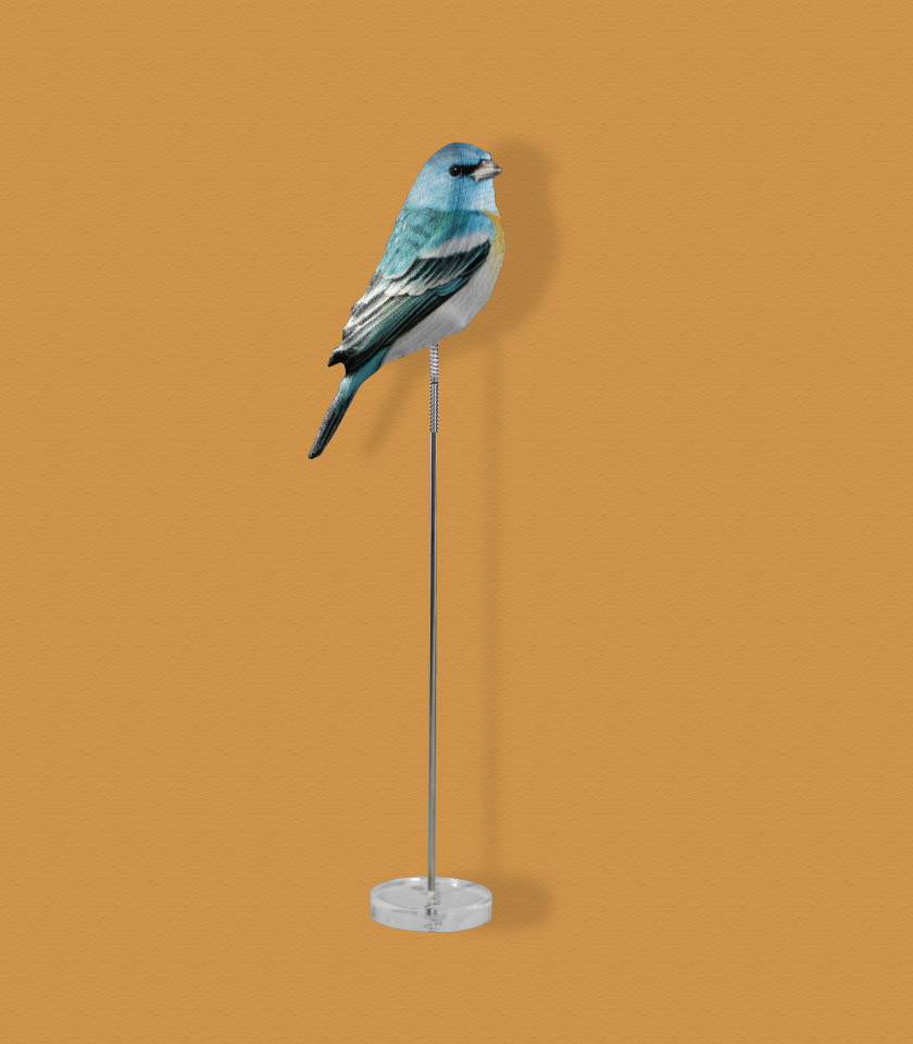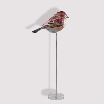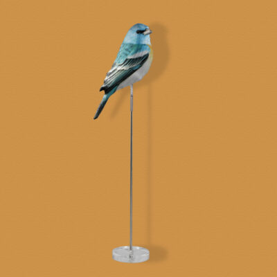 Frigilla bird, αντικείμενο από εκτυπωμένο αλουμίνιο σε πλεξιγκλας βάση 5cm x 1cm. Designer: Aluminati