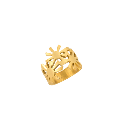 Δαχτυλίδι από επιχρυσωμένο ασήμι με ματ φινίρισμα. Διαστάσεις :2 x 1.5cm, μέγεθος : 52. Από τη συλλογή Under the Sun by Mystis by Sofia Zarari.