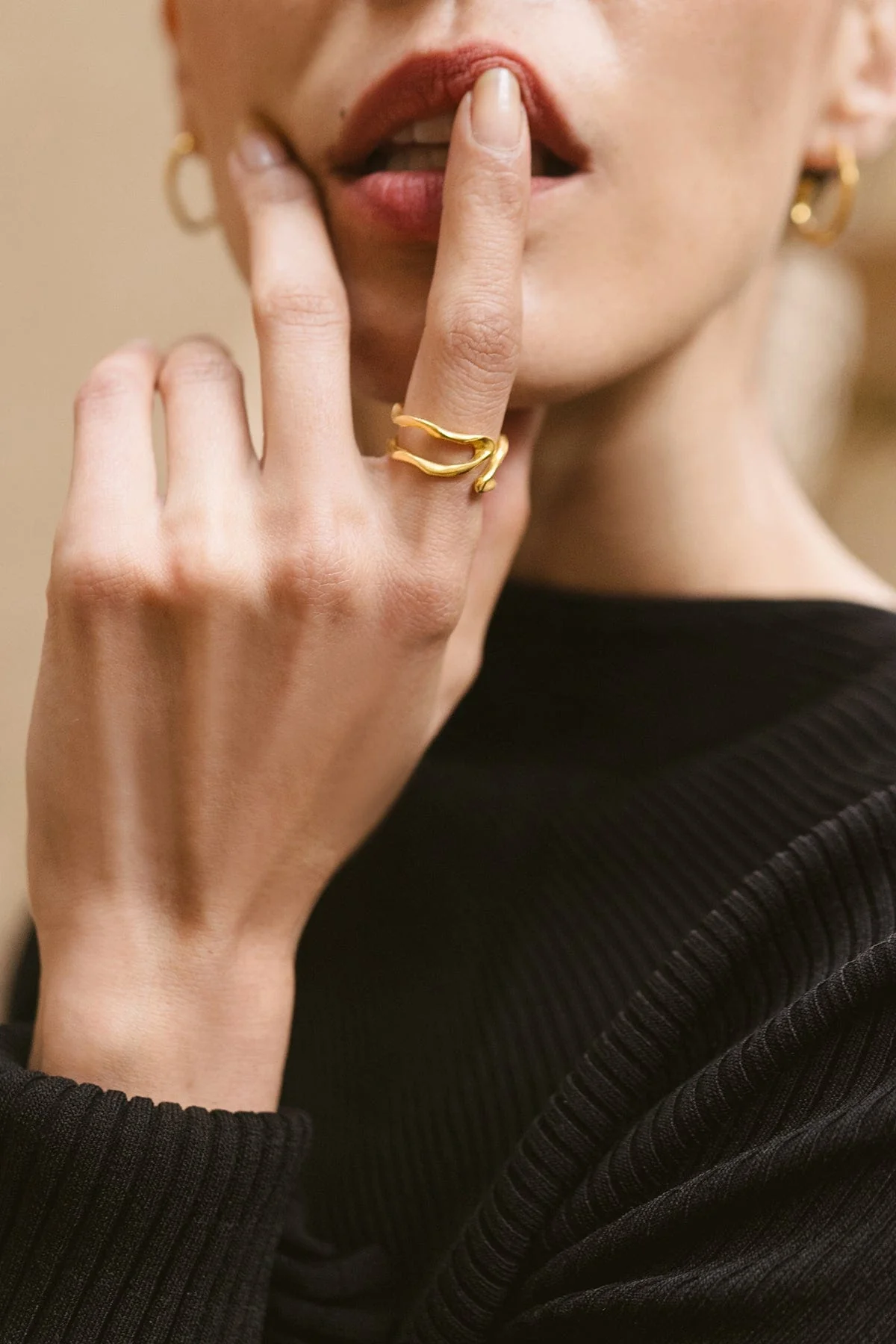 “Εμπνευσμένο από τις χρυσές φλέβες της τέχνης Kintsugi, αυτό το ομώνυμο δαχτυλίδι είναι αρκετά ευέλικτο για να φοριέται καθημερινά, ενώ ο ανοιχτός σχεδιασμός του σας επιτρέπει να το φοράτε σε πολλά δάχτυλα. Η τέχνη του Kintsugi επικεντρώνεται στην επισκευή σπασμένων κεραμικών χρησιμοποιώντας χρυσό. Αντί να κρύβει τις ρωγμές, ο Kintsugi τις αναδεικνύει, δημιουργώντας ένα νέο αντικείμενο με ξεχωριστή ομορφιά. Αυτή η τεχνική δείχνει ότι οι πληγές και οι ατέλειες είναι μέρος της ιστορίας μας και μπορούν να γίνουν πηγή της δύναμης και της ομορφιάς.”