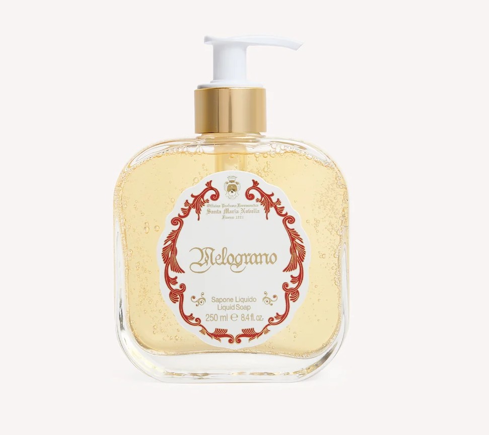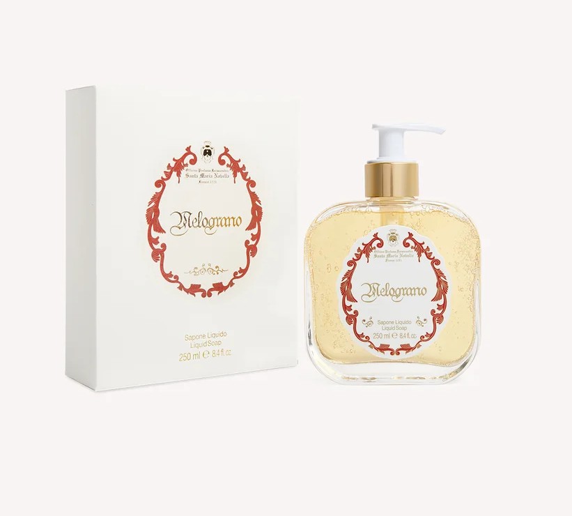 Το υγρό σαπούνι Melograno της Santa Maria Novella αιχμαλωτίζει την ξεχωριστή ουσία του ροδιού, σε συνδυασμό με μια απαλή και φυσική σύνθεση που εξασφαλίζει αποτελεσματικό και σεβαστό καθαρισμό της επιδερμίδας σας. Αυτό το σαπούνι μεταφέρει το πλούσιο και βαθύ άρωμα του καρπού του ροδιού, δημιουργώντας μια ευχάριστη και αναζωογονητική οσφρητική εμπειρία. Καθαρίζει απαλά, ενώ οι φυσικές σαπωνίνες και το εκχύλισμα καλέντουλας συνεργάζονται για να θρέψουν και να καταπραΰνουν την επιδερμίδα.