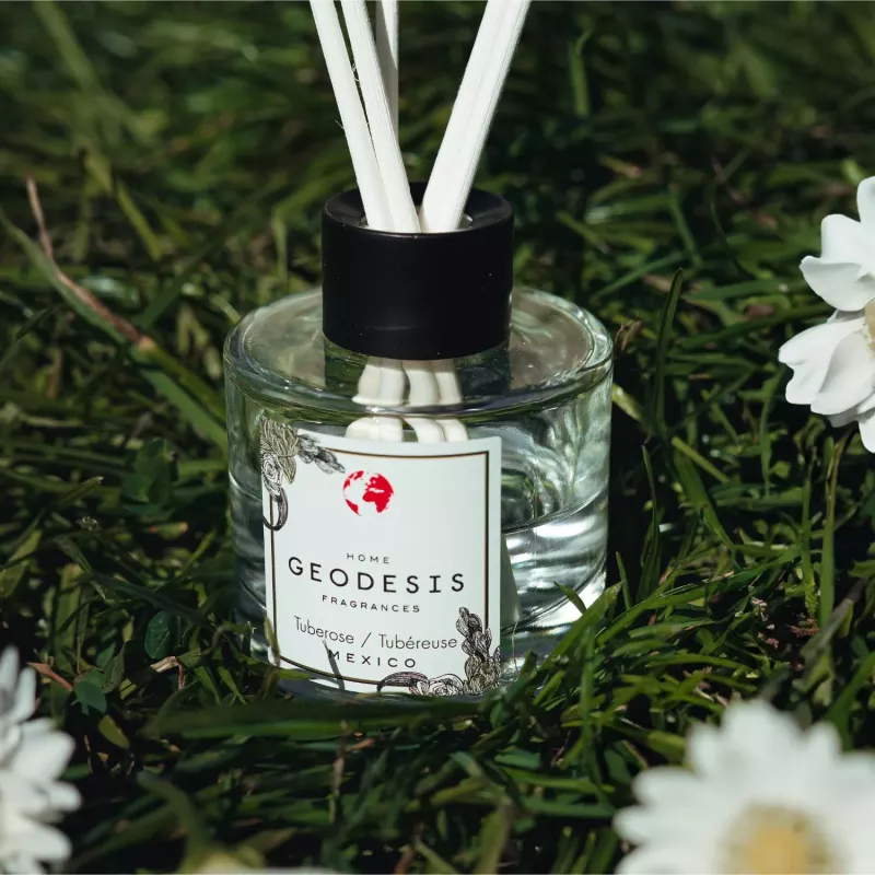 Τα Diffusers Geodesis λειτουργούν βυθίζοντας τα ραβδιά αρώματος στο αρωματικό διάλυμα και το άρωμα διαχέεται φυσικά και αυτόνομα.