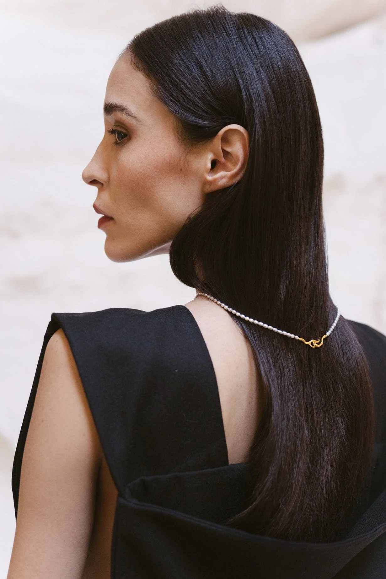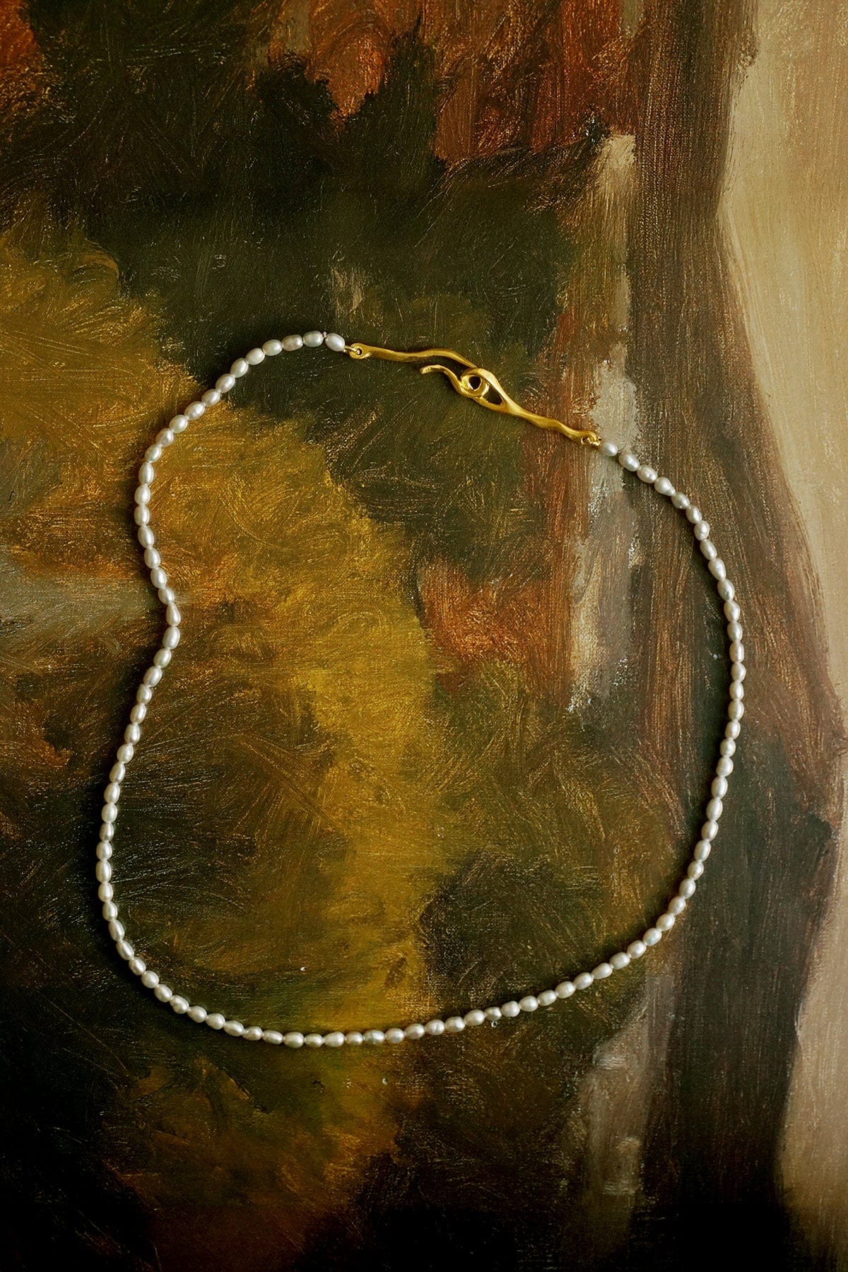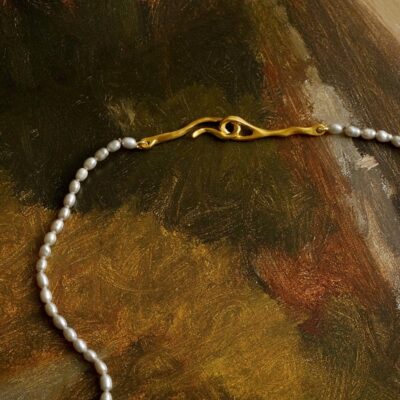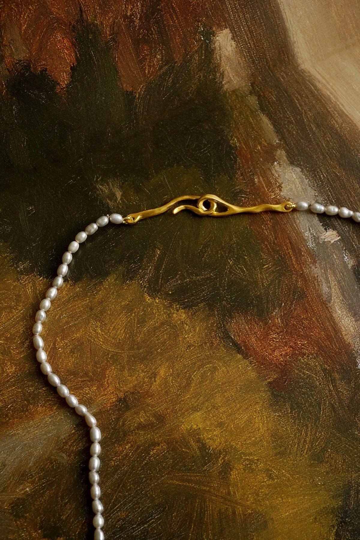18K Επιχρυσωμένο κολιέ με μαργαριτάρια γλυκού νερού και χειροποίητο κούμπωμα. Μήκος 45εκ. by AR.M Anna Rosa Moschouti.