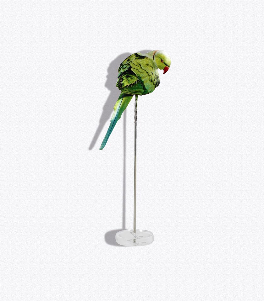 Athenian Parrot III, αντικείμενο αλουμινίουμε εκτύπωση σε στύλο αλουμινίου και βάση πλεξιγκλάς.