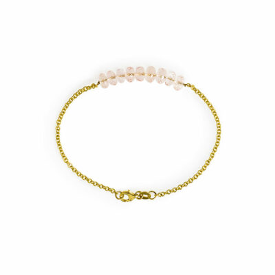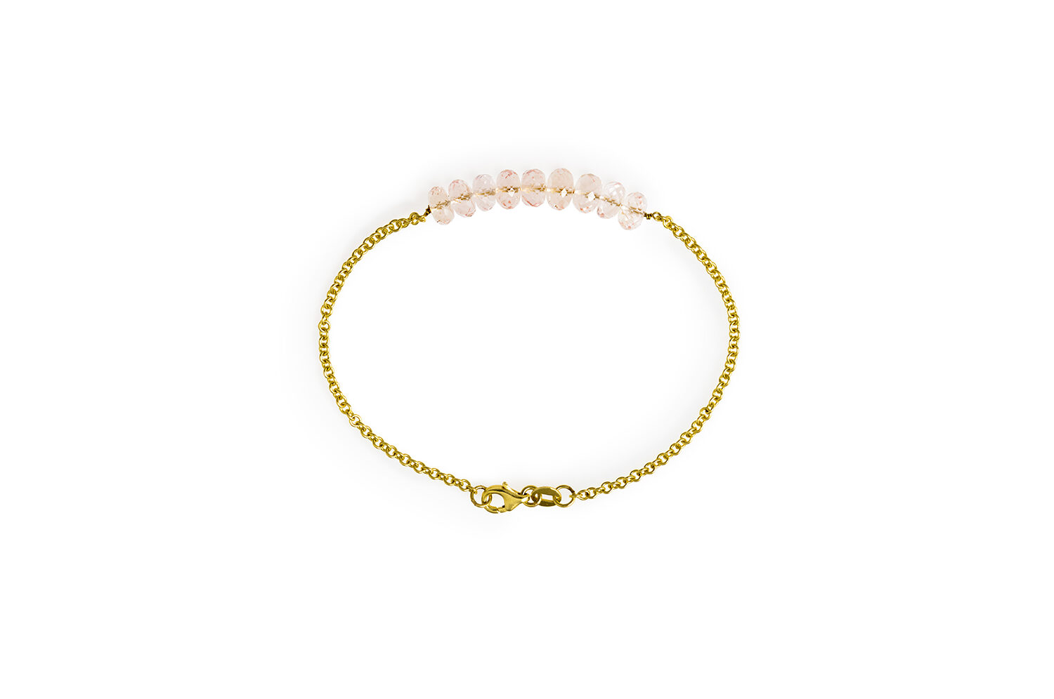 Βραχιόλι με αλυσίδα και πέτρες μοργκανίτη, εξαιρετικής κοπής σε αλυσίδα 14K. Πρόκειται για ένα αποκλειστικό αντικείμενο που σχεδιάστηκε και παρήχθη από την γκαλερί της Ελένης Μανέρη