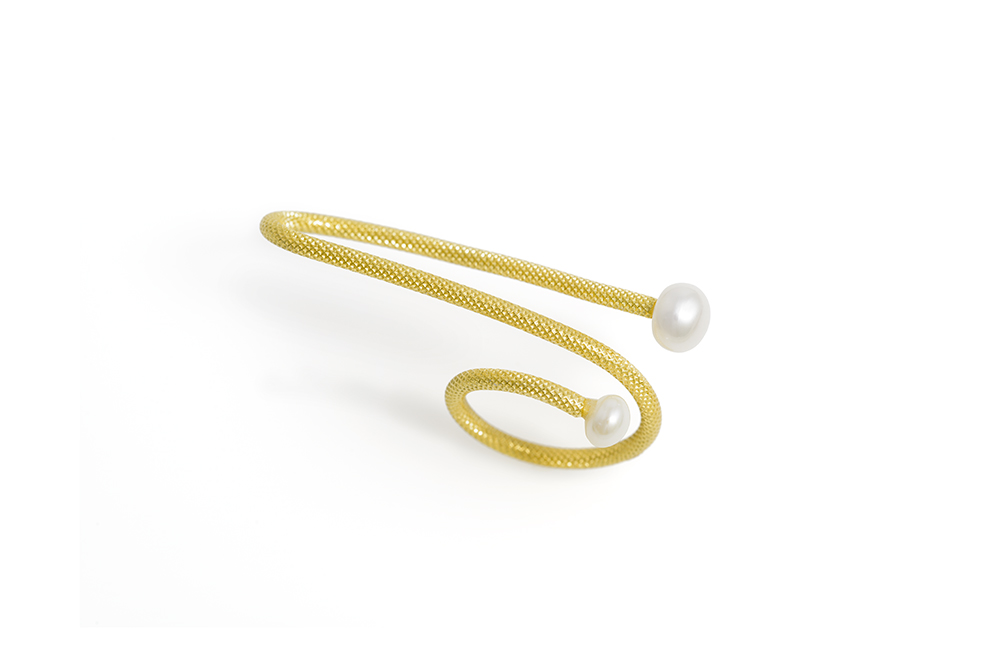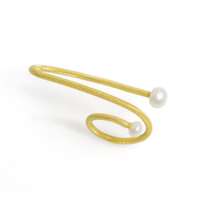 Ασημένιο επιχρυσωμένο twisted δαχτυλίδι με μαργαριτάρι.