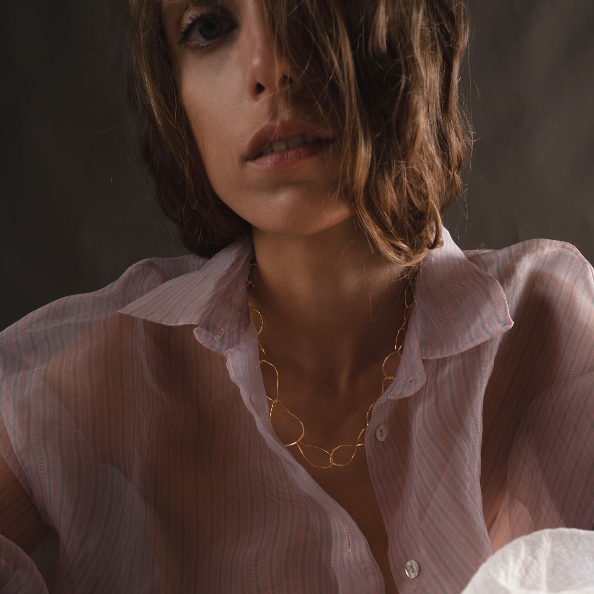 Ασημένια, 18k επιχρυσωμένη, ελαφριά αλυσίδα με γυαλιστερό φινίρισμα. Μήκος : 80cm
