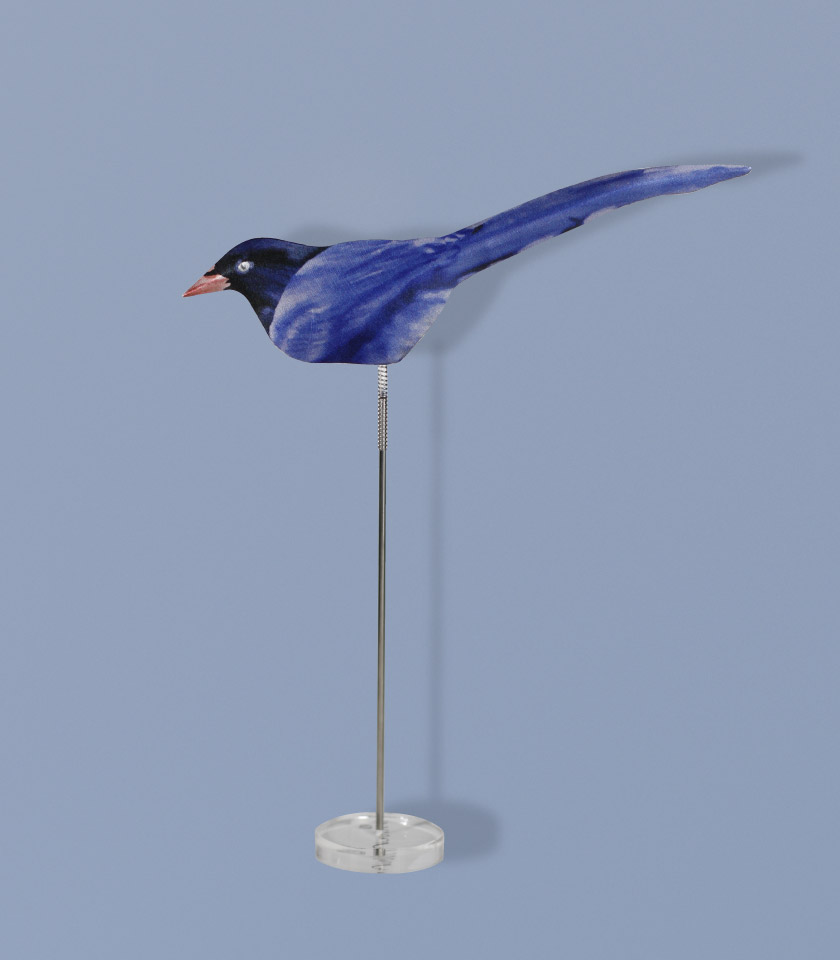 Yucatan bird, αντικείμενο από αλουμίνιο σε πλέξιγκλας βάση διαμέτρου 5cm x 1cm.