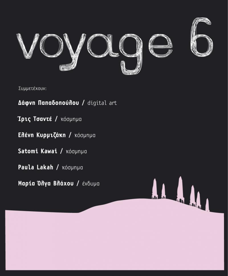 Η Γκαλερί της Ελένη Μαρνέρη φιλοξενεί για ακόμη μια φορά ένα εικαστικό γεγονός, πυρήνα πολυδιάστατης δημιουργικής έκφρασης. Από τις 25.10.12 και για ένα μήνα, η Γκαλερί μετατρέπεται στο εικαστικό terminal για έξι καλλιτέχνιδες στην έκθεση με τίτλο VOYAGE 6.