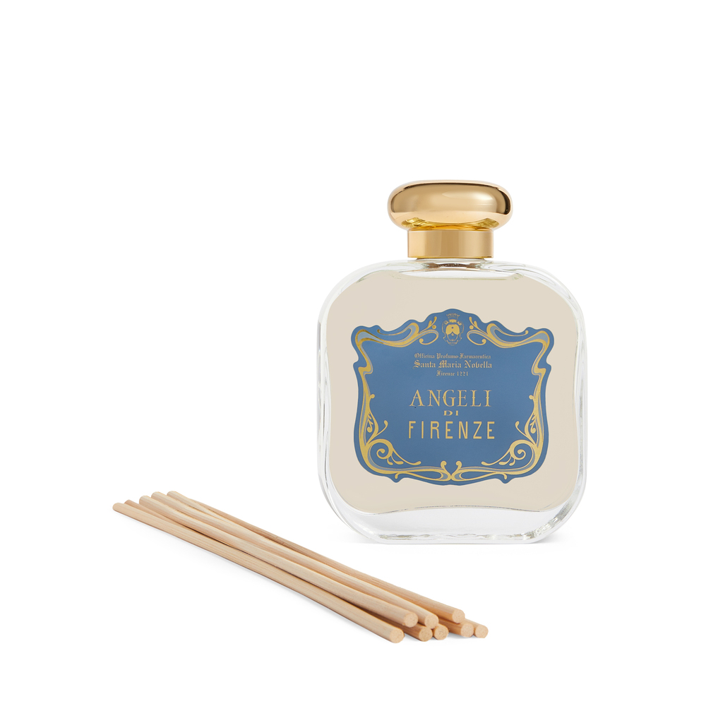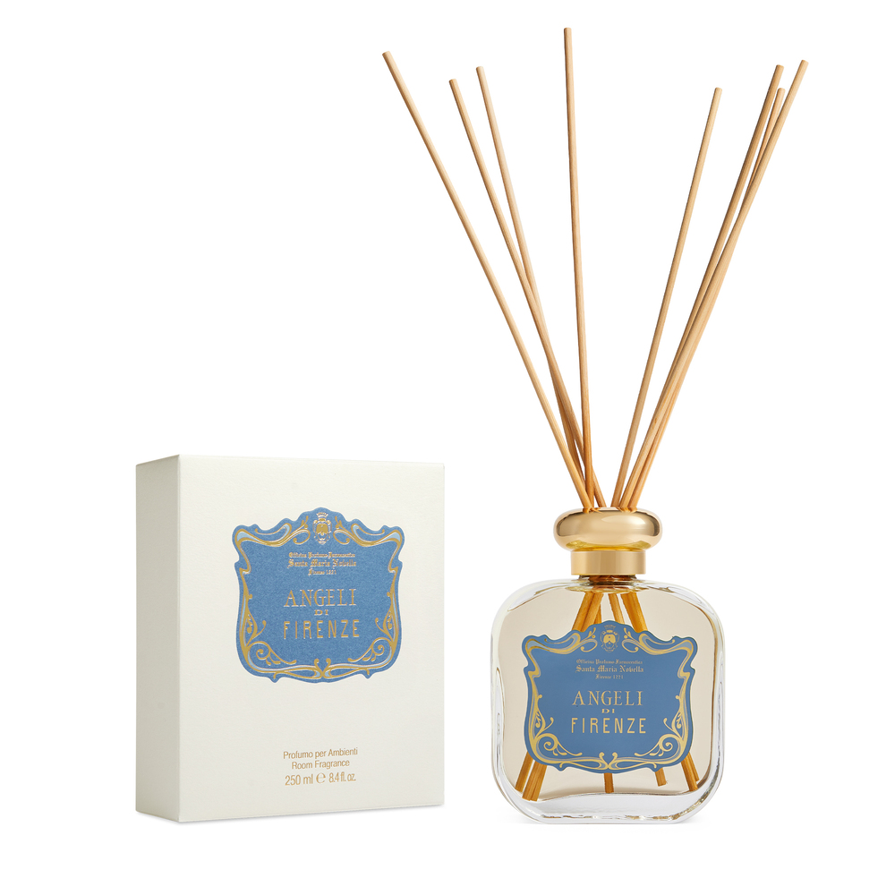 From the exclusive Firenze 1221 Edition and its precious artefacts, the Room Fragrance Diffuser Angeli di Firenze preserves the exquisite glass bottle with the Officina monogram, the golden cap, and the finely engraved label.The package contains 8 wooden sticks.