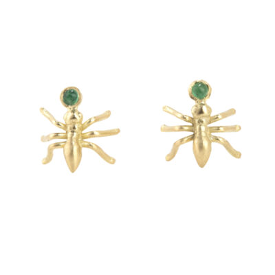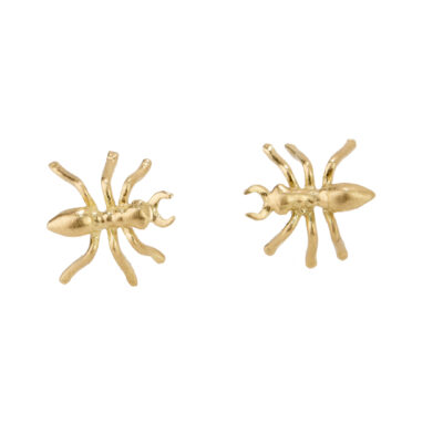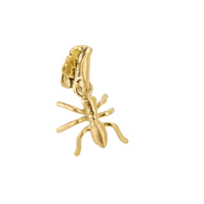 Gold 18k single ant stud from the Symbols collection by Joanna Peters. Combine with other single studs such as the Leaf carrying Ant single stud, the flower single stud, flower single hoop, etc and other single charm hoops from the collection.