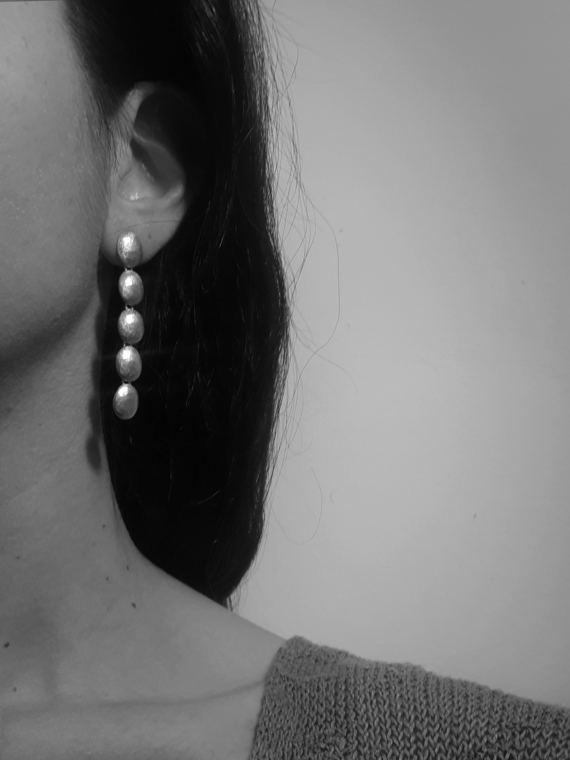 Silver 925, hammered pebble earrings. By Margarita Malliri.