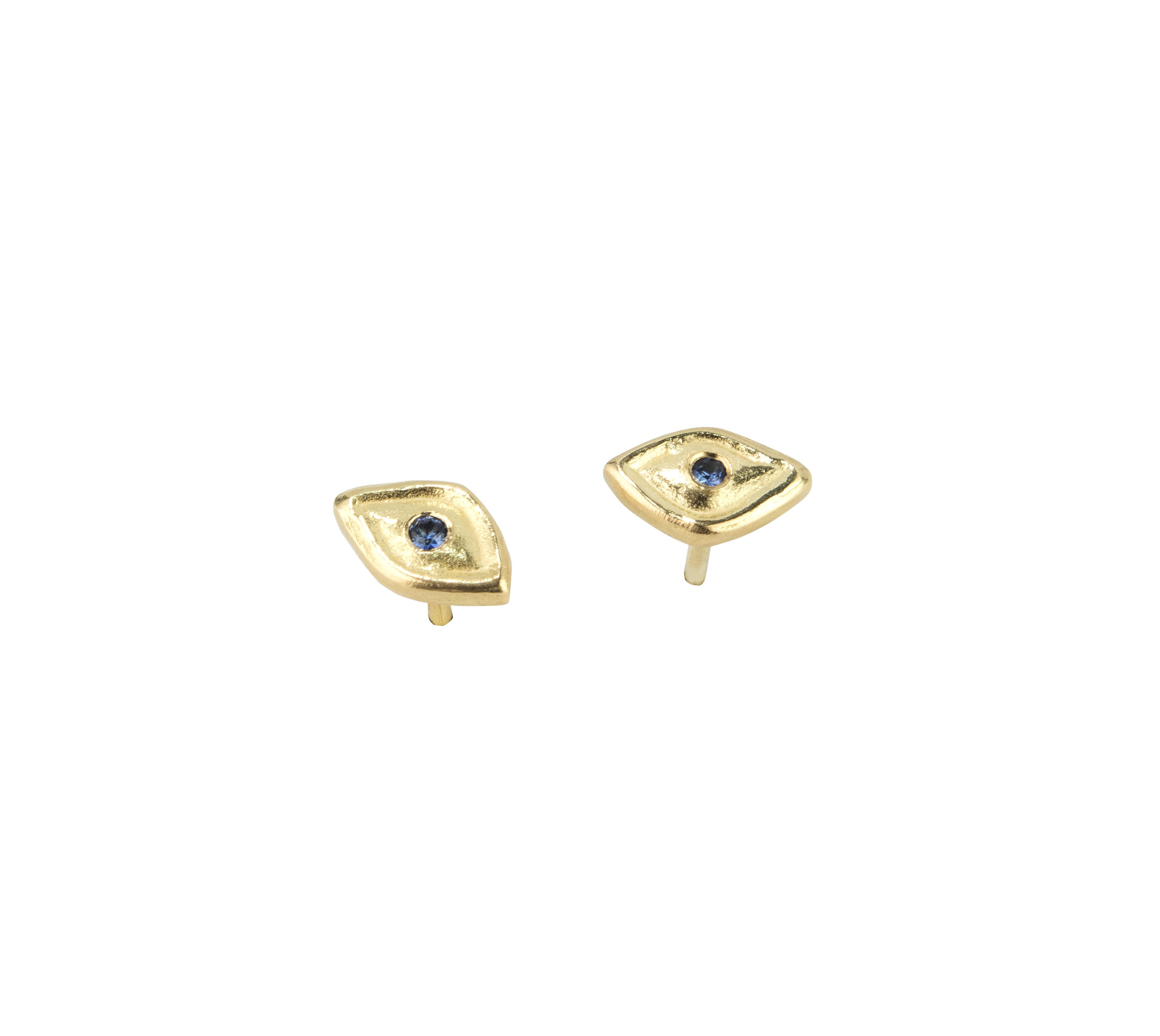 Gold 18k Eye studs with blue sapphire from the Symbols collection by Joanna Peters. SINGLE EYE stud also available! Contact us for more.