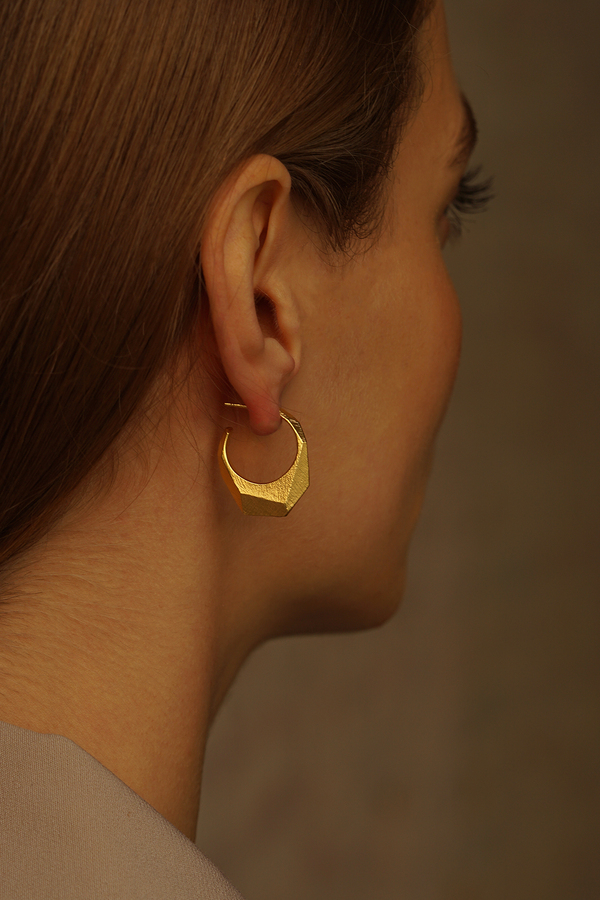 Inspired by sharp rocky formations found in nature, the Chunky Facet Hoops have been hand-carved in the perfect size to be worn on a daily basis. They will add the extra texture and shine to your everyday outfit. From the Transcendence collection by Anna Rosa Moschouti.