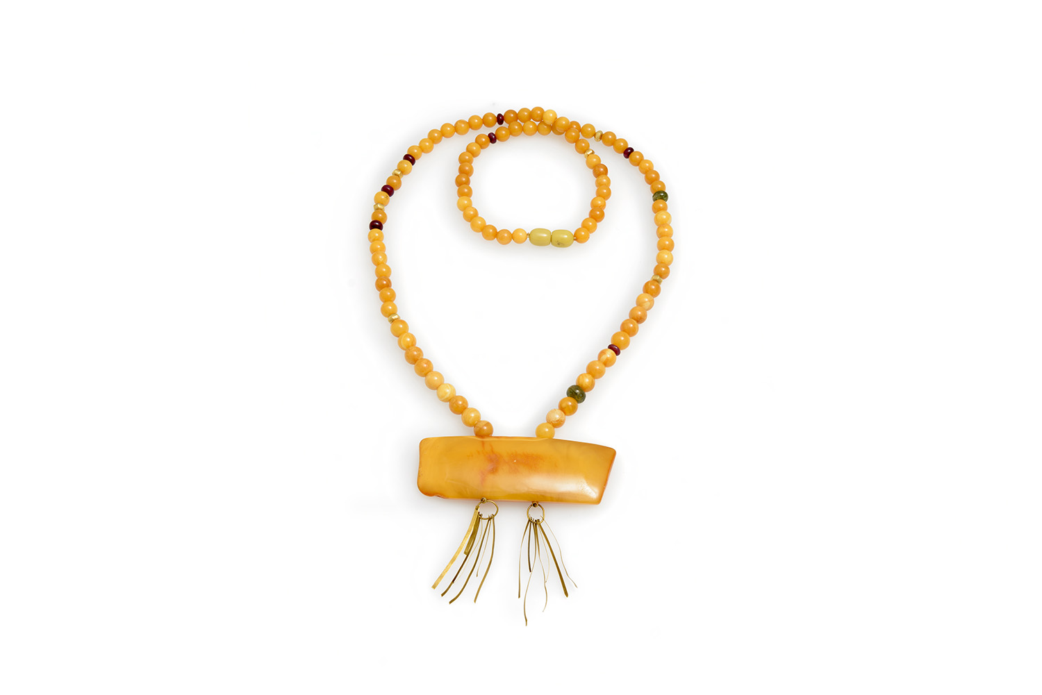 Vintage Amber necklace with gold 18k and tourmalines. Unique piece, Length: 60cm.