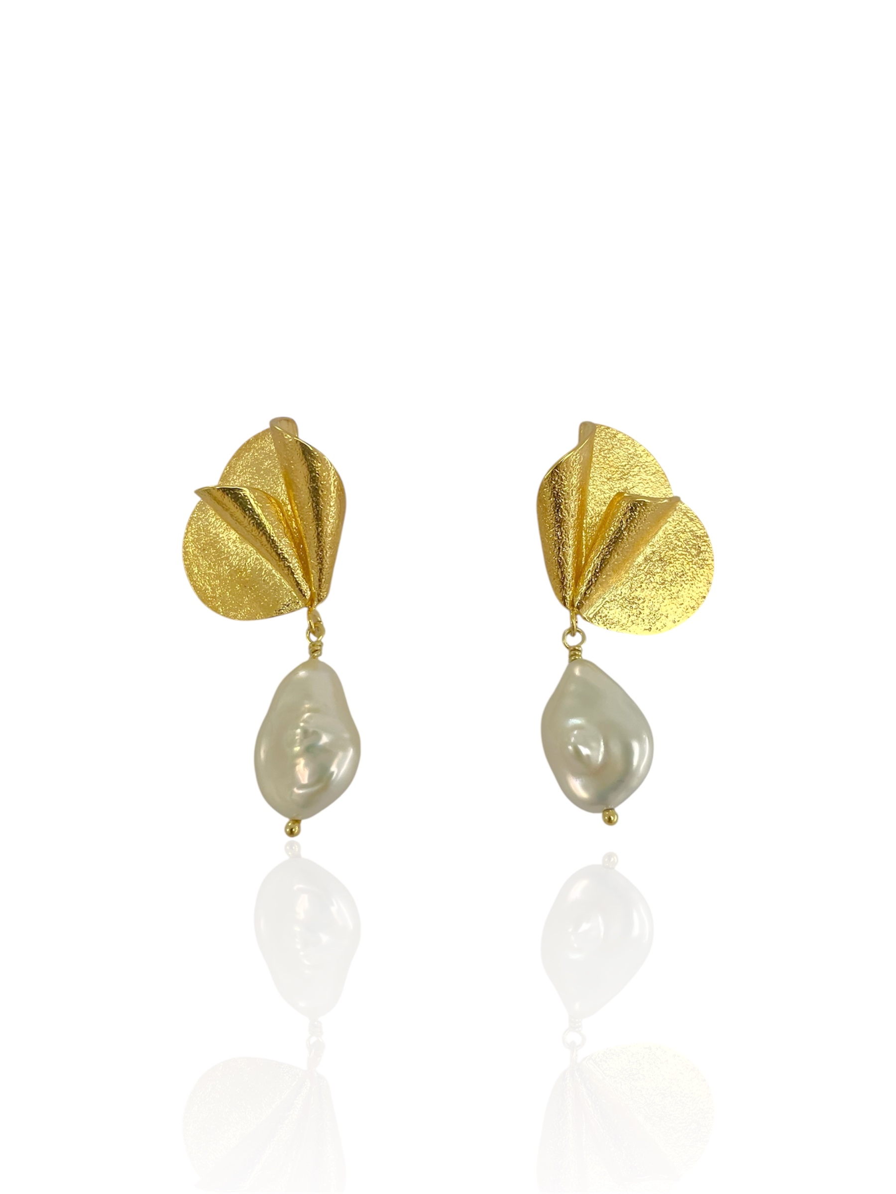 Farfalle (Butterflies) Goldplated Earrings with Baroque Pearls
