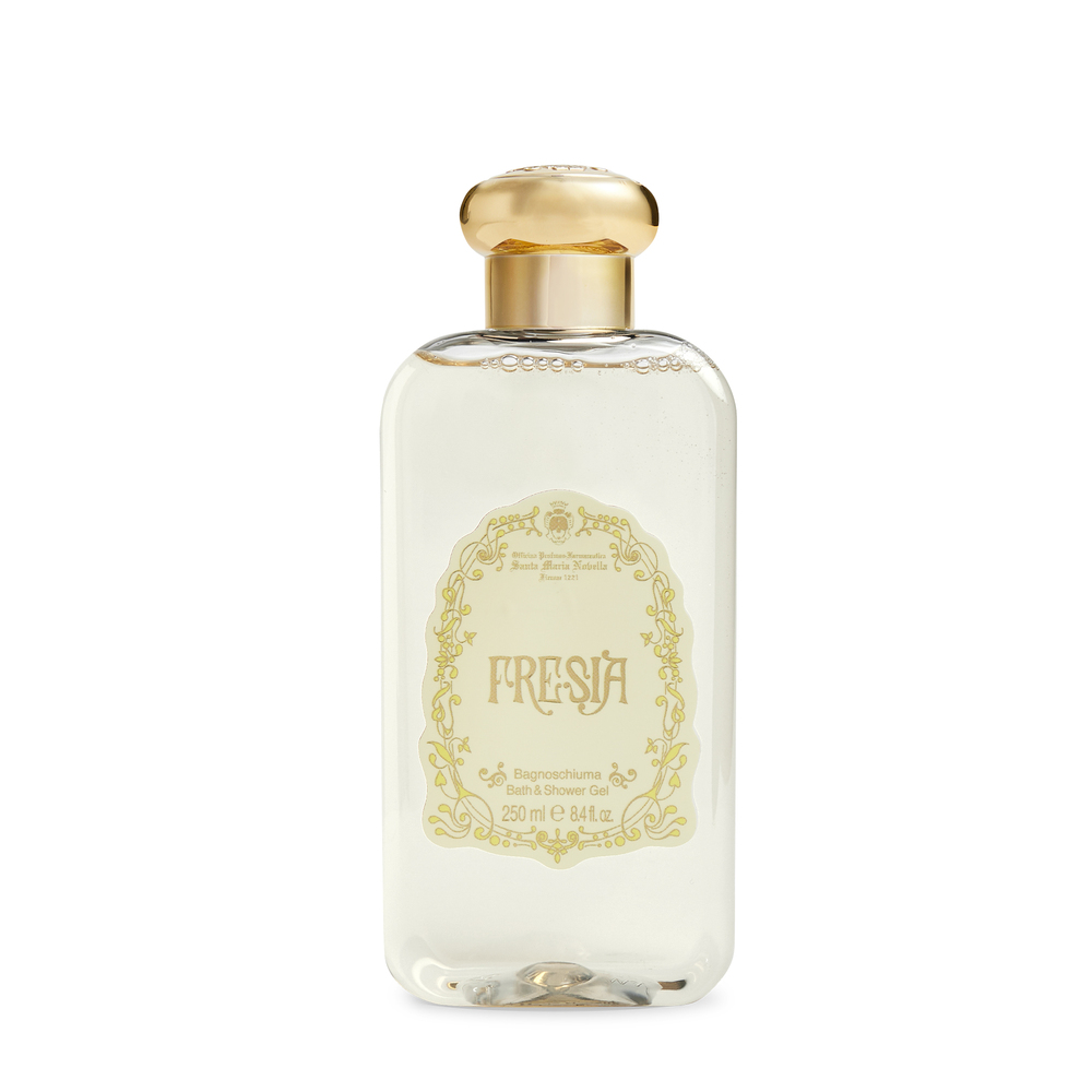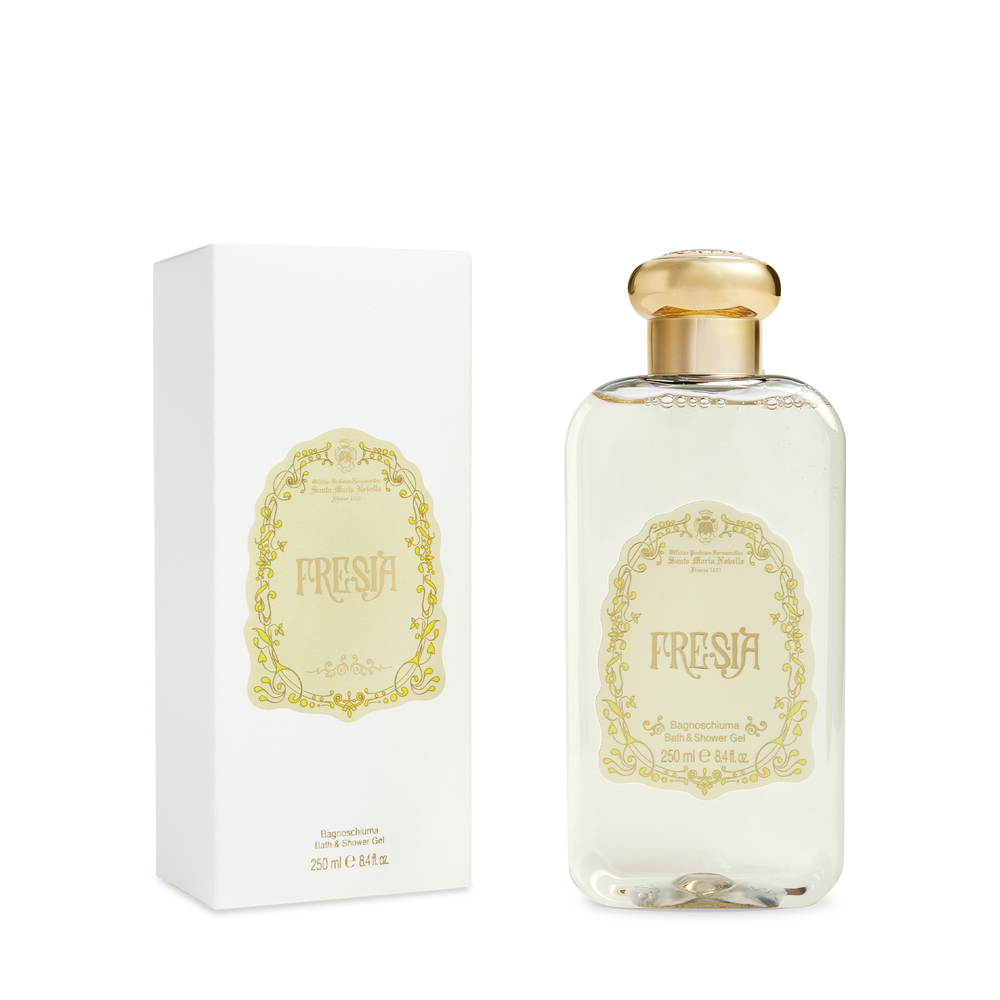 Fresia: the enveloping freshness aroma of Officina Profumo-Farmaceutica di Santa Maria Novella. Our bath gel is created to gently cleanse the skin with a special glance to sustainability thanks to the surfactants of vegetable origin chosen for its formulation.