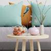 Frigilla bird, aluminun object of turquoise color on aluminun stick with a plexiglass base, diamater 5cm x 1cm. Designer: Aluminati