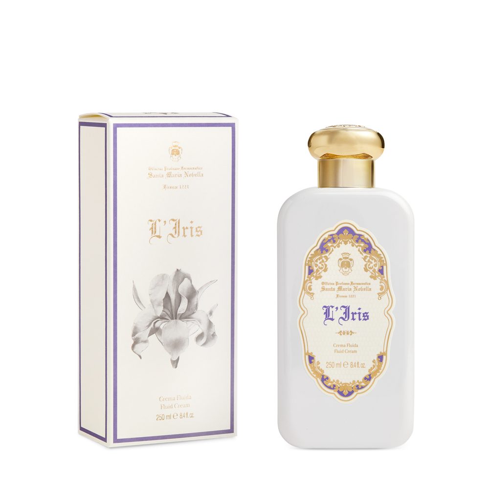 The flower symbol of the city of Florence lends its name to L’Iris Fluid Body Cream, while the iconic Eau de Parfum offers the elegant and timeless fragrance. This body cream is composed of vegetable oils and butters masterfully combined to make the skin soft and velvety. Its formulation offers a delicate and luminous olfactory trail, reflecting the essence of the iconic L’Iris Eau de Parfum. Green and floral notes envelop the skin of your body, holding the secret of the precious Florentine iris.