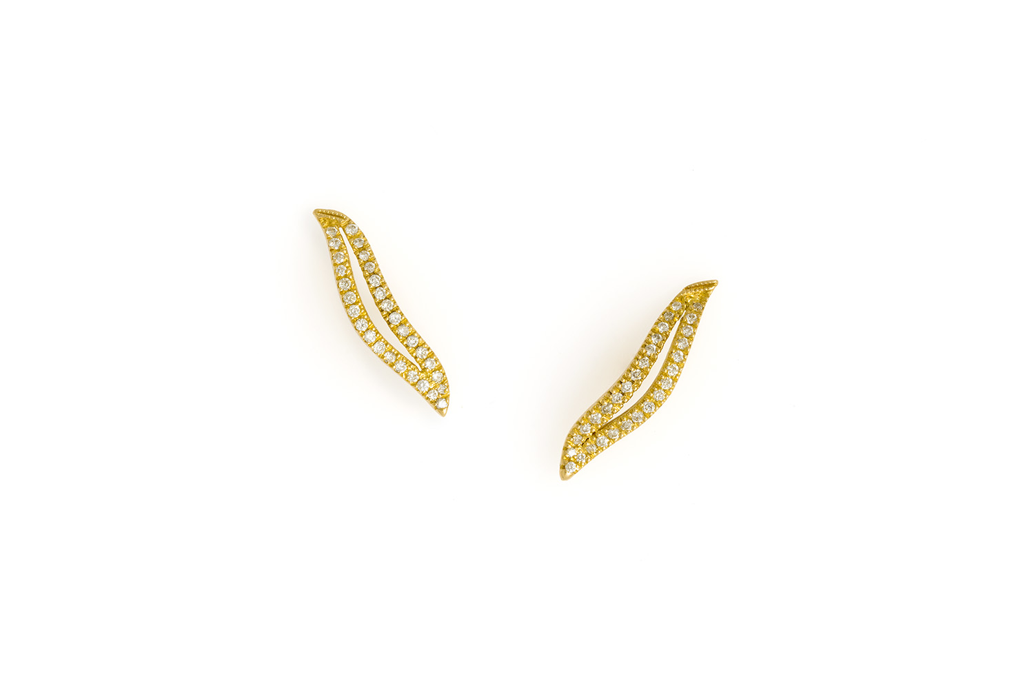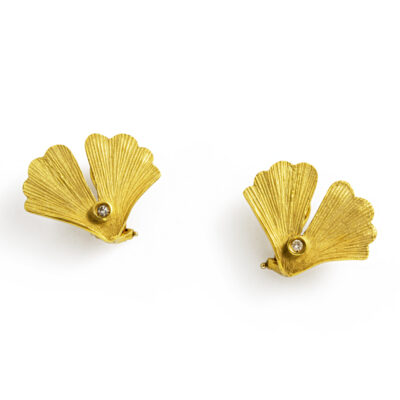 Leaf motif earrings made of yellow gold 18k with 55 brilliant-cut diamonds. For pierced ears Leaf length : 2,5cm. Unique pair.