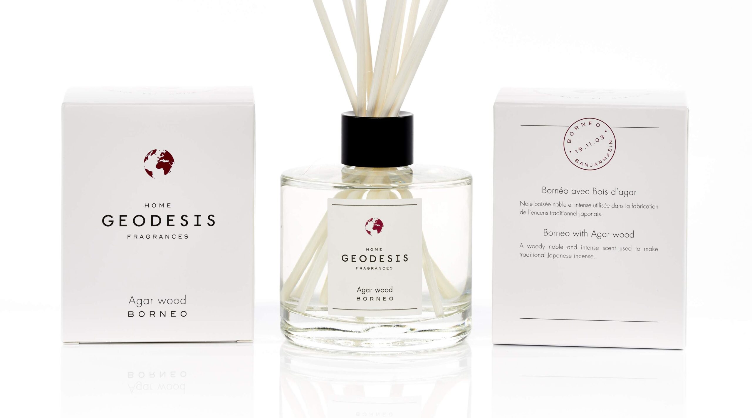 The reed sticks are immersed in a perfumed solution and absorb it to delicately scent one’s interior. Geodesis diffusers offer a constant diffusion for several weeks.