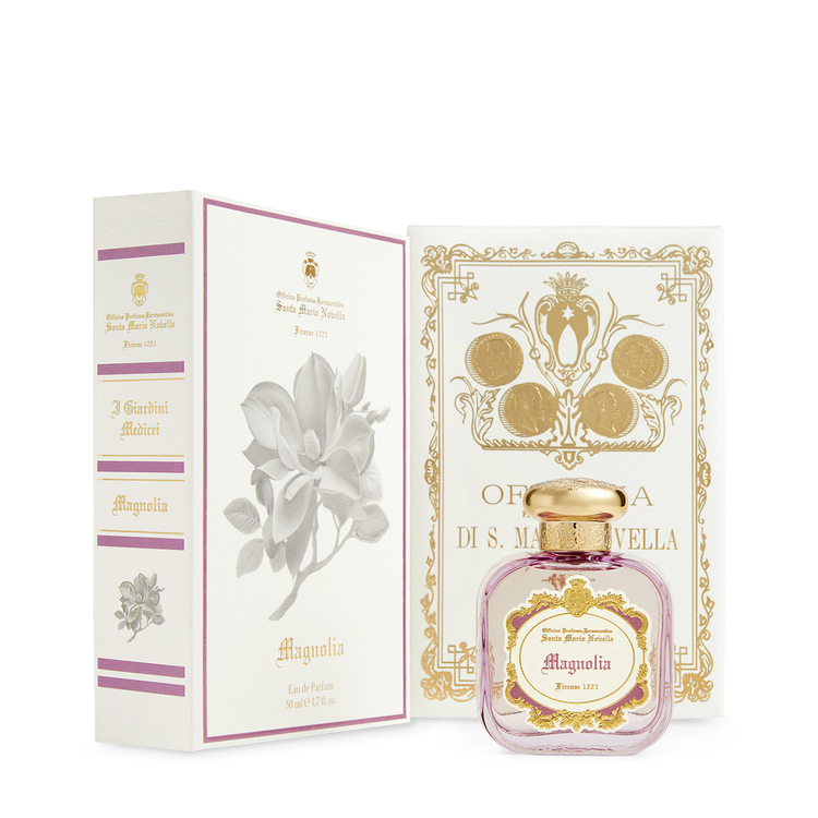 Magnolia Grandiflora is a grandiose evergreen tree whose traces can be found also in the prehistoric era. It questions our notion of time with its unusual ability to pass through times, to adapt to different environments, and to preserve its one-of-a-kind individuality. A rare talent that reminds of Officina Profumo-Farmaceutica di Santa Maria Novella’s own history. An awe-inspiring exemplar of Magnolia Grandiflora also graces the facade of Villa Medici di Castello: this species arrived in Florence in the 18th century, and it was soon grown in the Medici’s family possessions.