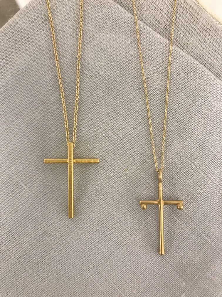 Gold cross 14k. Also available 18k gold upon request. Size 2,7 x 2 cm. Gold chain 40cm has an extra charge 120€.