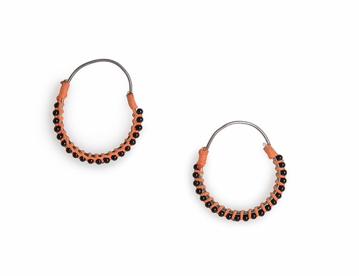 925 silver mini hoops with onyx stones and orange cord. Handmade and everyday.