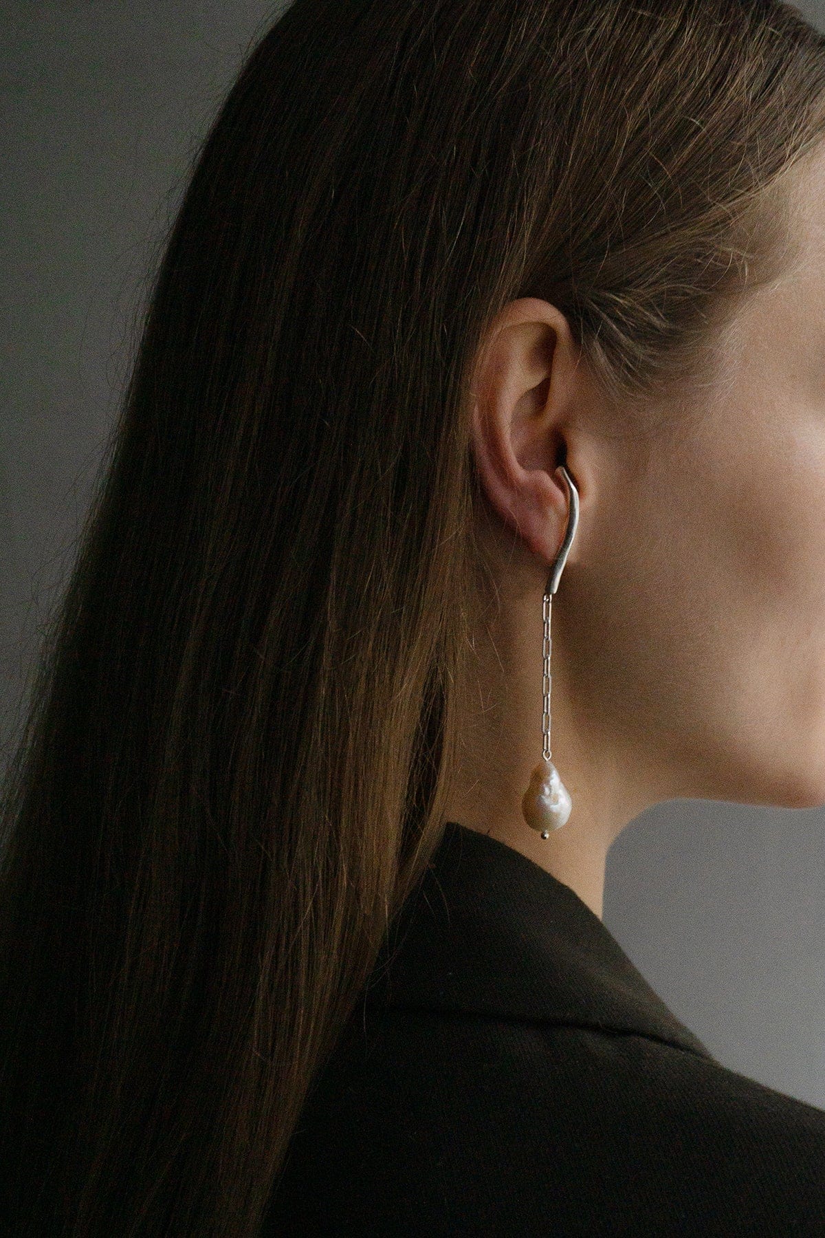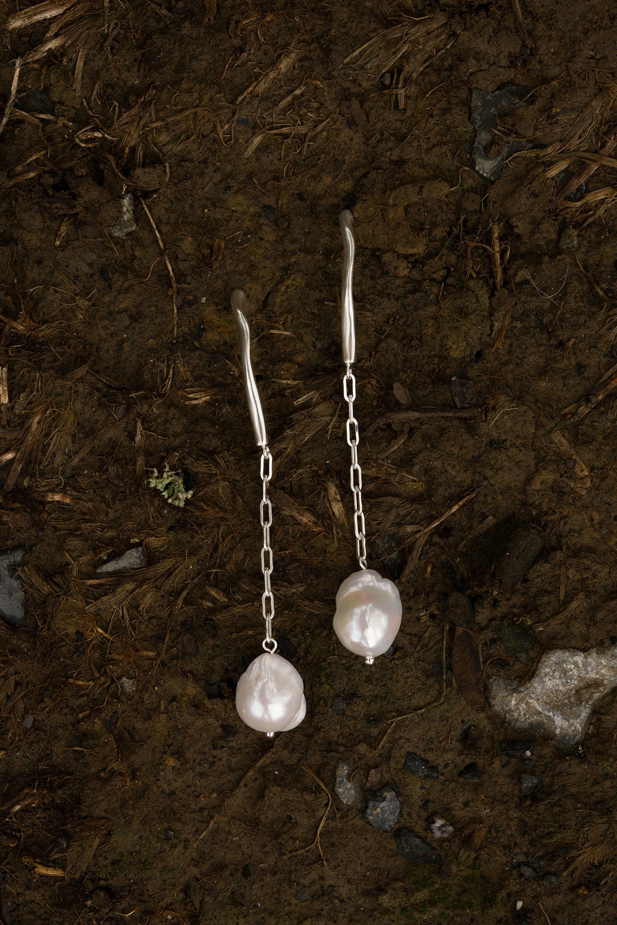 Silver 925, long earrings with baroque, fresh water pearls. Length : 7cm. By AR.M Anna Rosa Moschouti