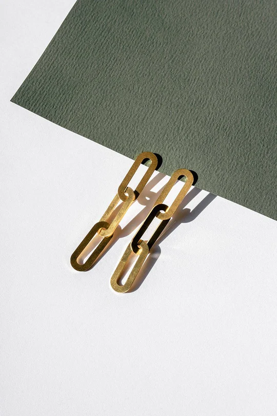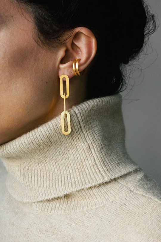These long link earrings made from three flat interlocking ovals is a statement yet versatile design for everyday wear.
