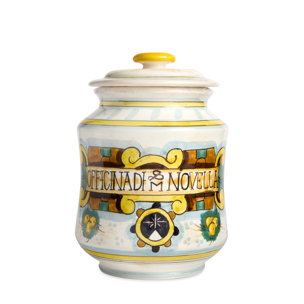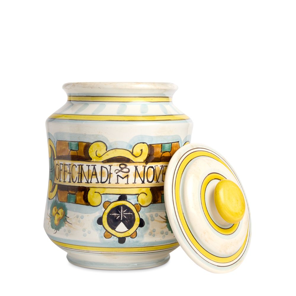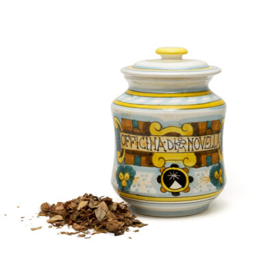 Crafted and hand-painted using natural dyes by the Montelupo Fiorentino master ceramists, Pot Pourri Albarello contains the precious pot pourri blend. It spreads the gentle breeze of Tuscany throughout your home. Albarello is the jar used in ancient pharmacies and mentioned in a document of the Santa Maria Novella convent and dated 1508.