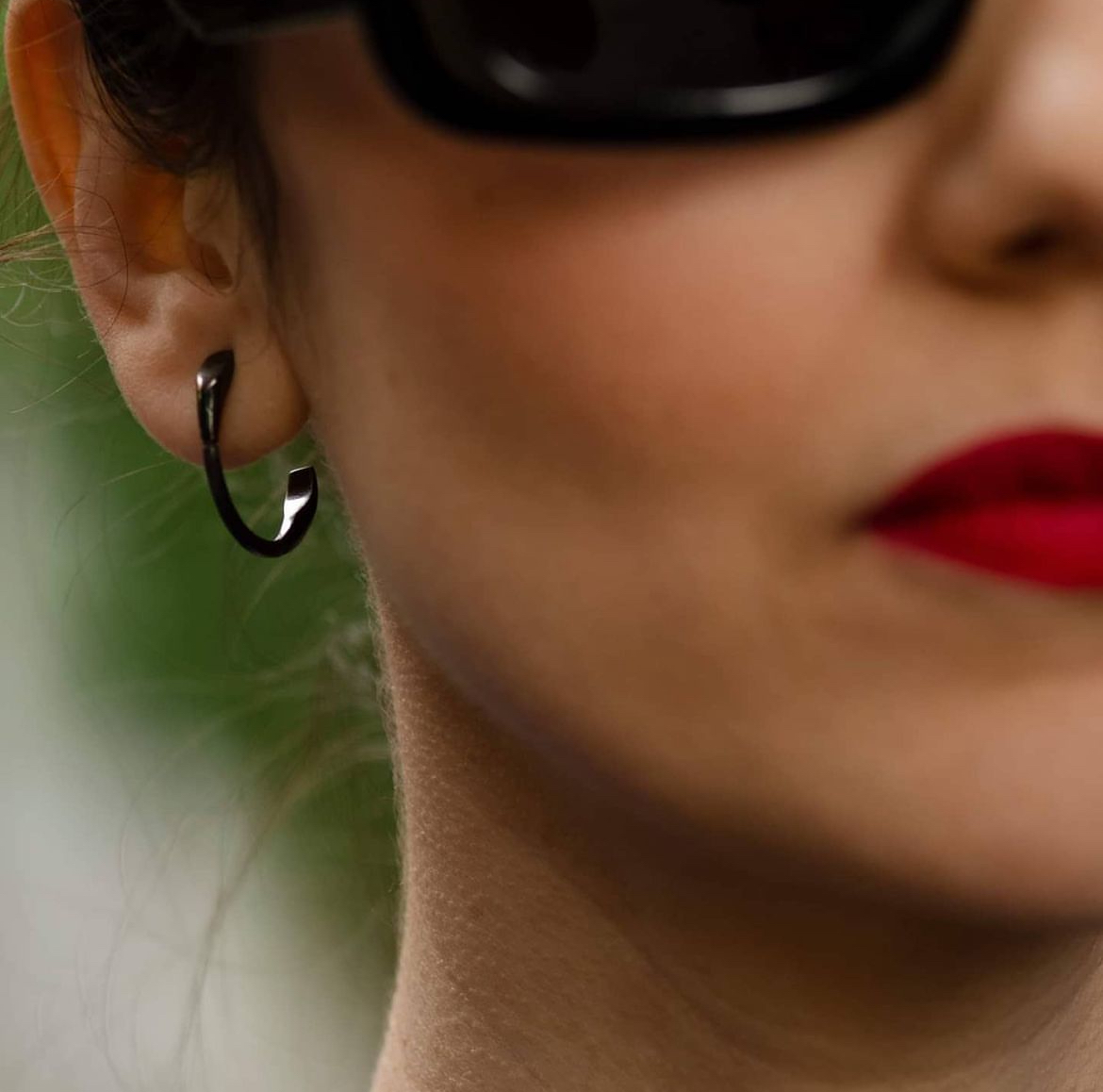 Silver 925 hoops from the Screwdriver collection. For pierced ears.