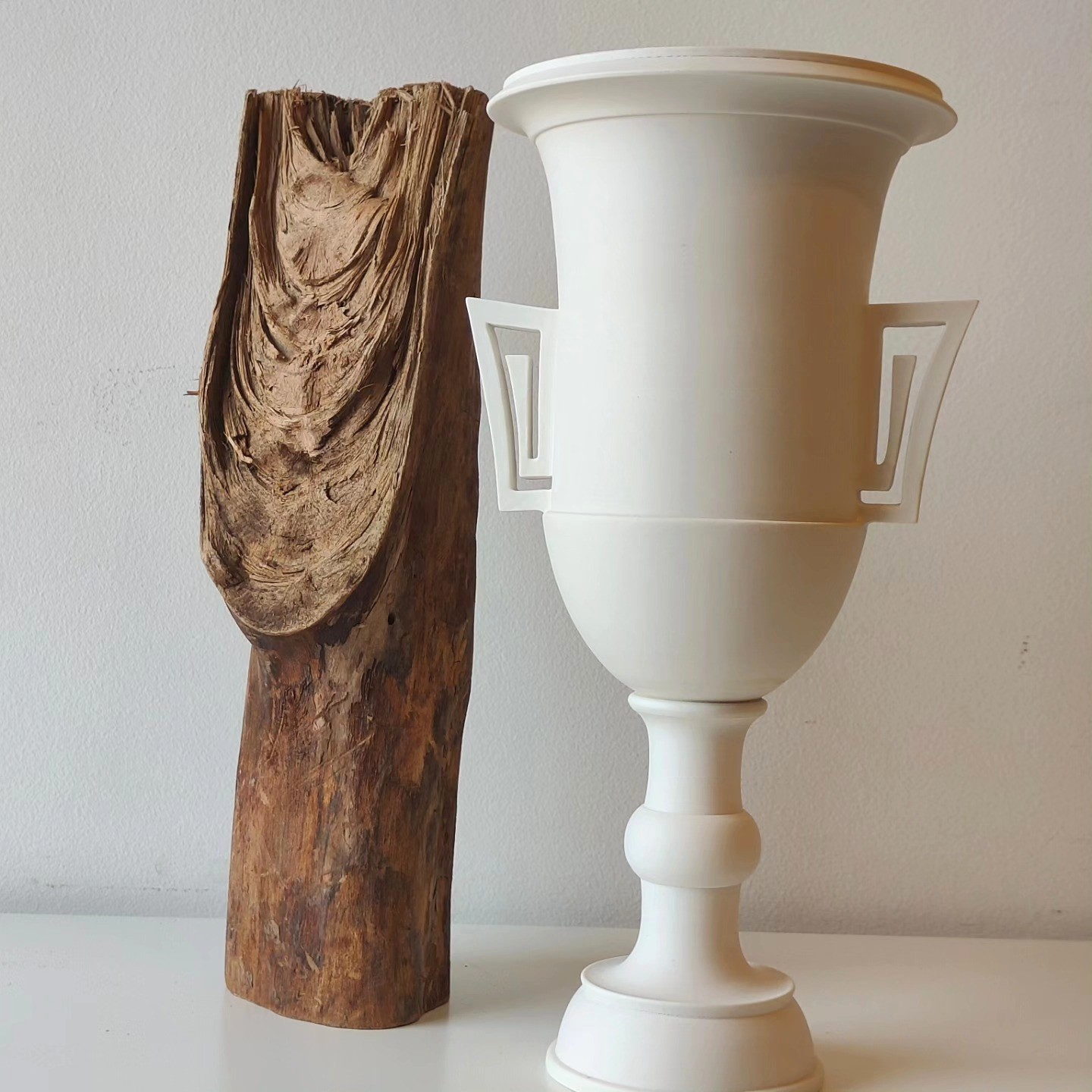 Krater Vase made of white porcelain from the collection “Intimacy in Transition” by Aris Galstyan, Dimensions: 41cm x 21cm.