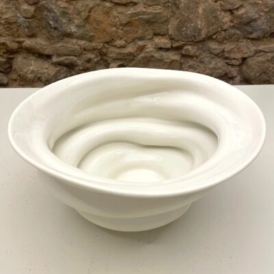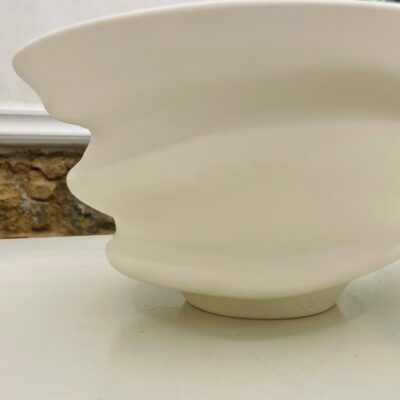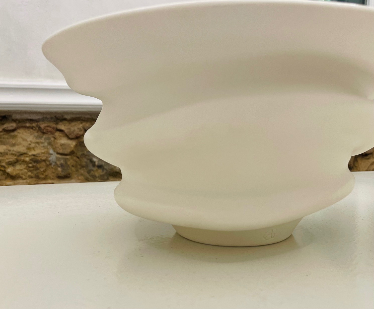 Handmade Ceramic Pot made of white porcelain from the collection “Intimacy in Transition” by Aris Galstyan, Dimensions: 26cm x 26cm x 13cm. Usable for food and washable in the dishwasher.