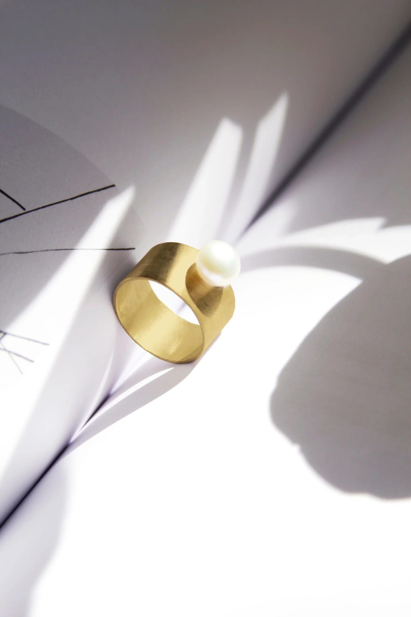 Silver gold-plated ring with a large freshwater pearl. By AR. M