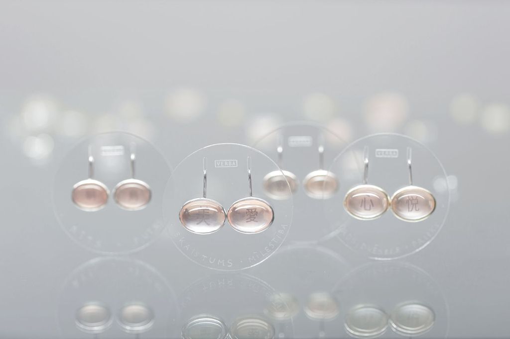 The Japanese part of the collection is formed by handmade asymmetrical silver rings and earrings with rose quartz, under which there are engravings with hieroglyphics on the theme of spring, beauty and blossoming.